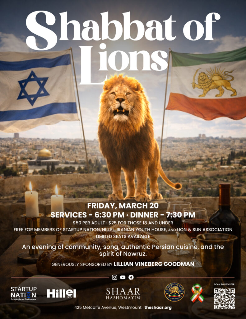 The group will be led by Carly Berlin, MSW, Registered Social Worker, together with Rabbi Yehoshua Ellis.To register, please contact Robyn Bennett at 514-937-9474 ext. 146 or rbennett@theshaar.org.