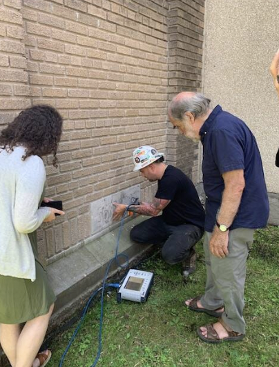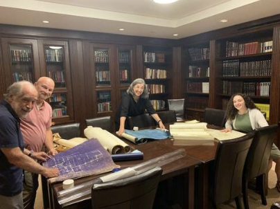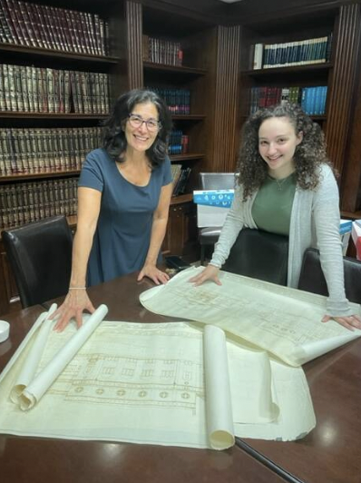 To gain a better read on the stone, the technician asked to scan the cornerstone from the building’s interior. Given the synagogue’s many renovations and expansions over the years, we pulled out the synagogue’s many architectural drawings and plans to investigate further.