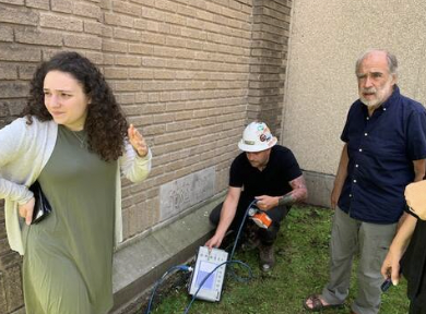 With the help of Radex who scanned the stone, we made the following exciting discovery: there is a metal tube centered in the 1922 cornerstone, indicating there is a more than 90% chance of something having been placed there. Given that it is a metal tube, the likelihood is quite high that this is yet another time capsule!